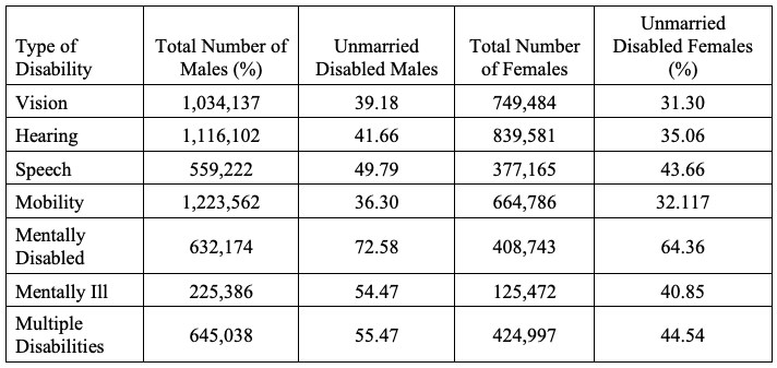 “Analyze the given statistical table from India’s 2011 Census on people with various physical and mental disabilities, and answer the following questions:”
