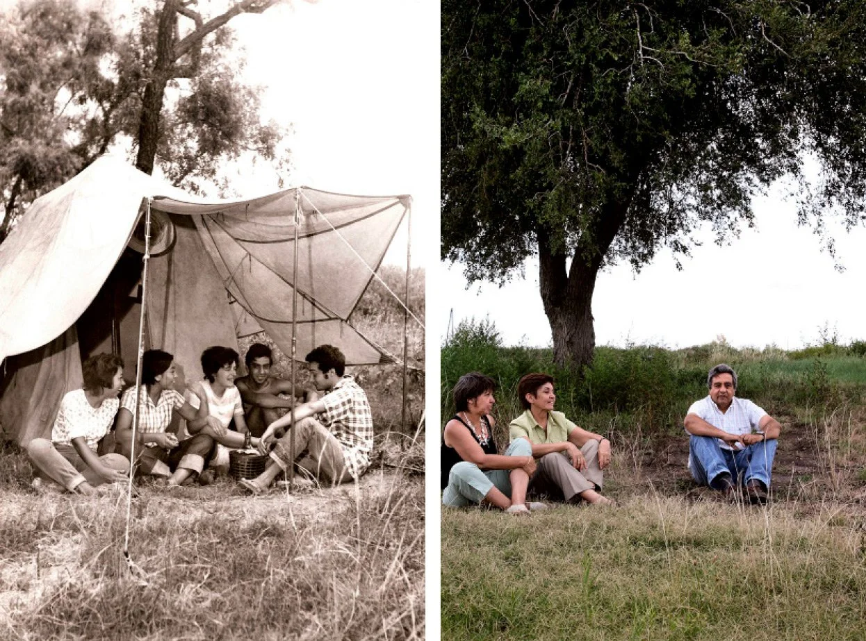 The exhibition's structure is simple: photos are presented in pairs. Each pair includes an old, usually black-and-white photo of a victim of state terrorism posing with family or friends in a specific location.