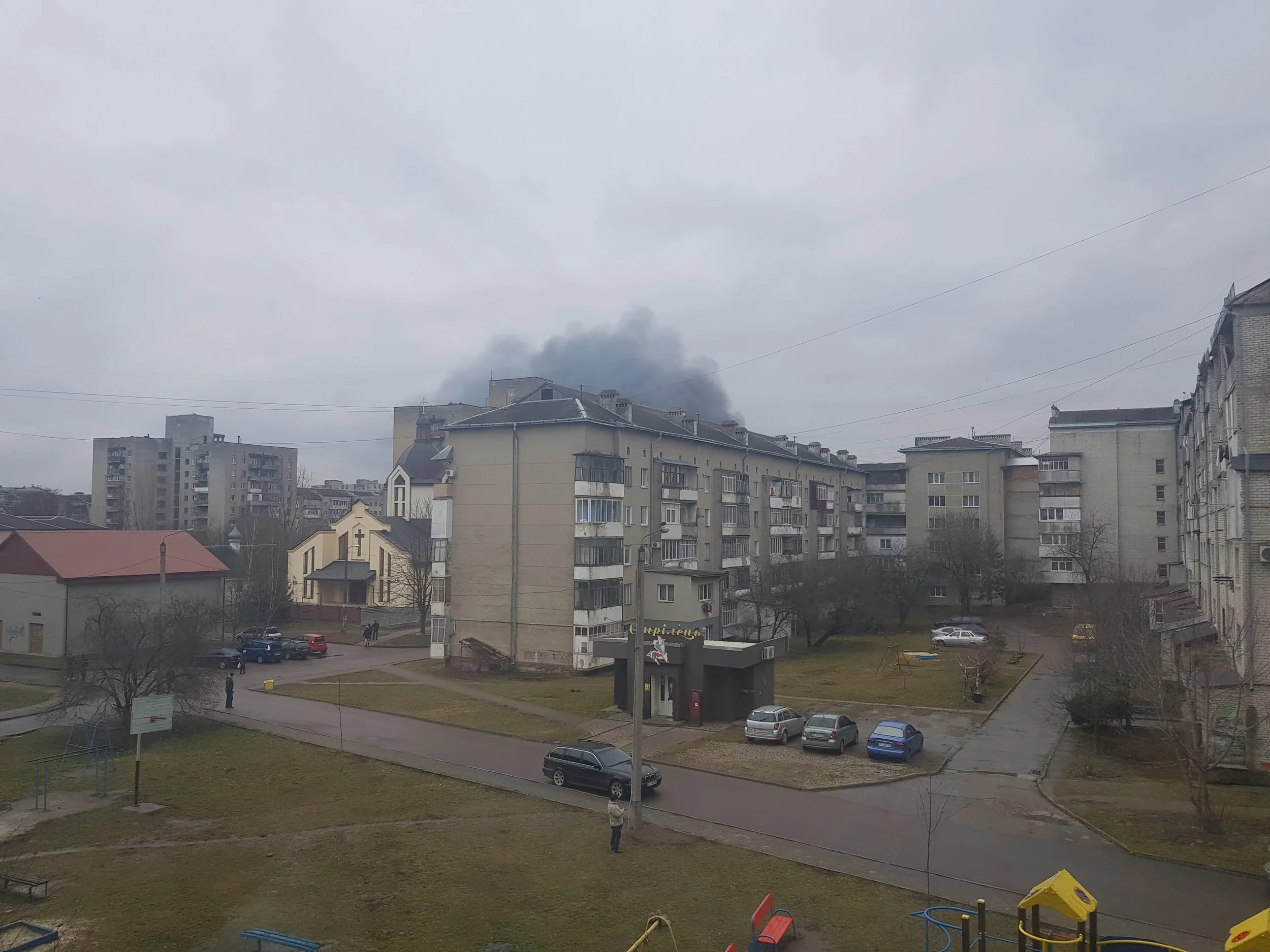 This was the local airport, already burning from a Russian bomb. We had just woken up. I didn't believe the war started until I pulled open the curtain and saw this smoke, and I realized that the worst had started. Here, you can see some people, but in an hour, there was no one. It’s very scary to see a sunny day with no people at all and everything closed—no fuel, no cash, no pharmacies. That was just the beginning.