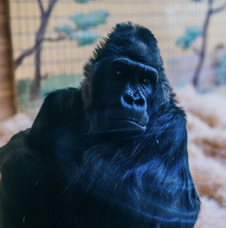 At 52, Toni is old by western gorilla standards. He has lived at the zoo for a quarter of a century. Since Gorillas are native to the lowlands of central Africa, they are not built for Ukrainian winters.
